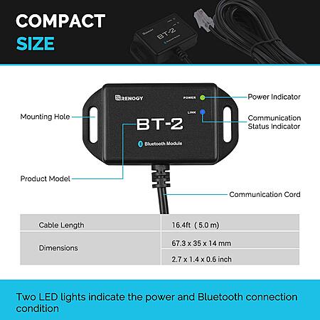 Renogy BT-2 Bluetooth Module RJ45 Communication Port Wireless Monitor $19.92 + Free Shipping w/ Prime or on $35+