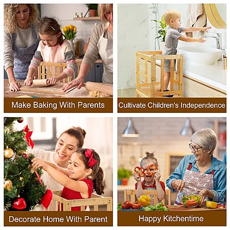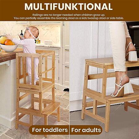 Model: COSYLAND Kids Kitchen Step Stool,Toddler Standing Tower with CPC Certification, Removable Anti-Drop Railing Safety Rail Enjoys Unique Patented Design A Anti-tip Structure More Stable, Natural Bamboo