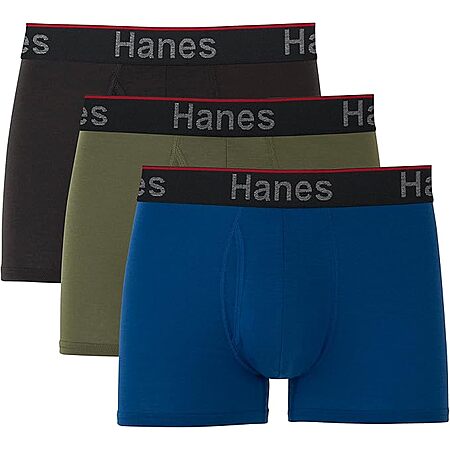 Model: Hanes Total Support Pouch Men's Boxer Brief Underwear, Anti-Chafing, Moisture-Wicking Odor Control, 3-Pack, Black/Blue, Large