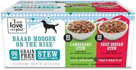 Model: I and Love and You Multipack (Beef Booyah Stew & Lambarama Stew) Beef/Lamb Wet Dog Food - 13oz/6pk