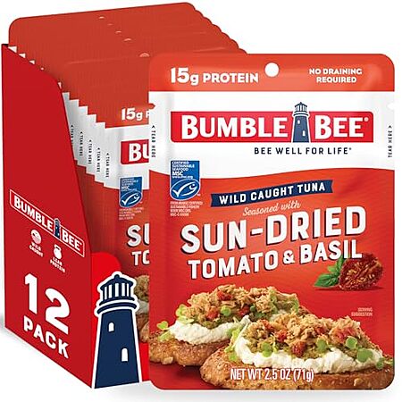 Amazon[amazon.com] has 12-Pack 2.5-Oz Bumble Bee Wild Caught Tuna Pouch (Tomato & Basil) for $9.79 - 5% when you check out via Subscribe & Save = $9.30. Shipping is free with Prime or on $35+ orders.
