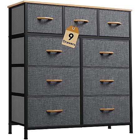 DWVO Fabric Storage Dresser with 9 Drawers (Dark Grey) $37.69 + Free Shipping w/ Prime or on $35+