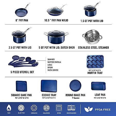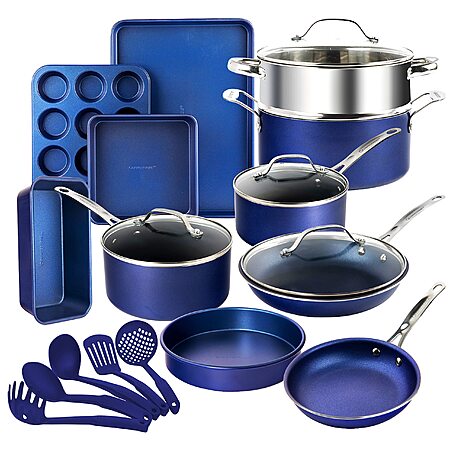 [Prime] 20-Piece Granitestone 100% PFOA PFAS Free Nonstick Cook and Bakeware Set w/ Ultra Nonstick Durable Mineral & Diamond Coating (Blue) $75.90 or Less + Free Shipping