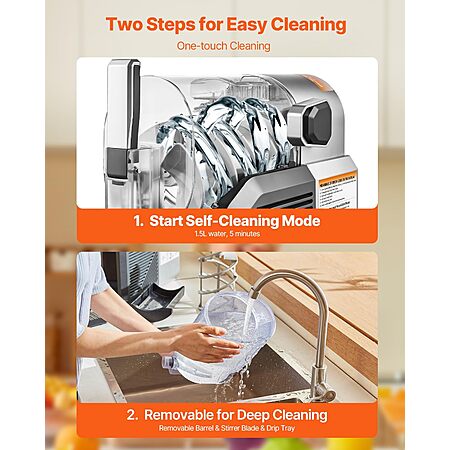 - Easy to Clean: This frozen drink machine features a self-cleaning mode for easy maintenance. For a deep clean, simply unlock the rear handle, remove the barrel and parts, then rinse them with water. Manually cleanable, especially in hidden areas. Additionally, it has a removable drip tray at the bottom for added convenience in cleaning
