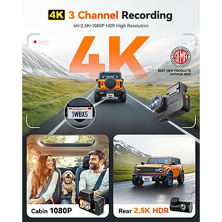 Prime: WOLFBOX X5 3 Channel 4K HDR Dash Cam: STARVIS 2 IMX678 Night Vision, 4K+2.5K+1080P. 128GB Card, GPS Support, Voice Control, Touch Screen $159.58