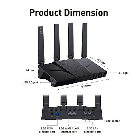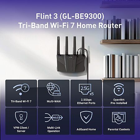 Model: GL.iNet GL-BE9300 (Flint 3) Tri-Band WiFi 7 Router, High-Speed 6GHz Gaming WiFi Router for Wireless Internet, Long Range, 5 x 2.5G VPN Routers for Fiber Optic Modem, Computer Routers, Home & Business