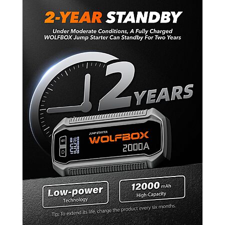 Prime: Wolfbox 2000A Jump Starter w/ 30W USB-C PD & USB-A QC 3.0 $26
