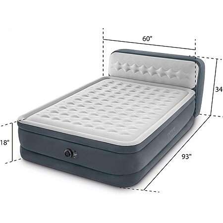 Intex 64447ED Dura-Beam Deluxe Ultra Plush Air Mattress with Headboard: Fiber-Tech – Queen Size – Built-in Electric Pump – 18in Bed Height – 600lb Weight Capacity $67.49