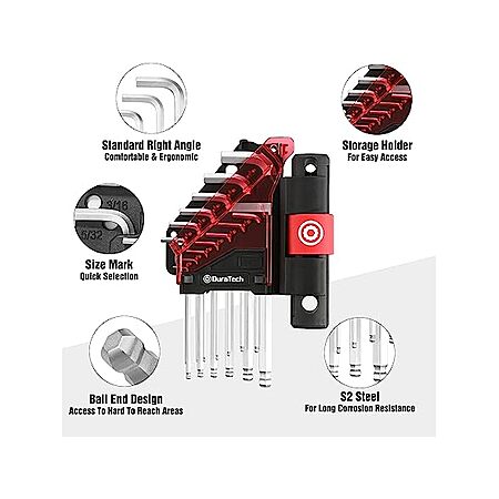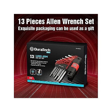 $7.97:DURATECH 13-Piece T-Handle Allen Wrench Set, Long Arm Ball End Hex Keys, S2 Steel, SAE 1/20–3/8 Inch