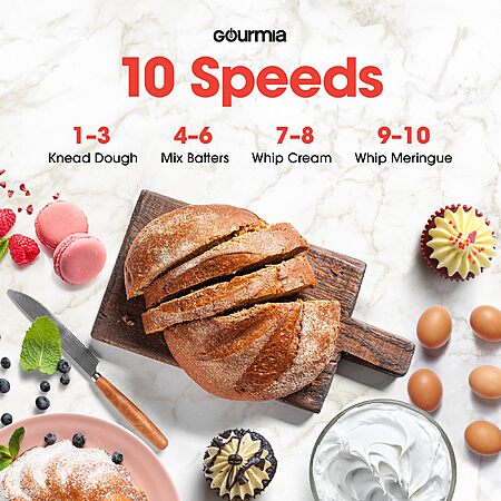 [Prime] 5-Quart Gourmia Digital Electric Stand Mixer w/ Attachments (Grey) $67.99 + Free Shipping