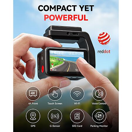 Prime: REDTIGER F4 4K Dash Cam Front, 2.2" Mini Car Camera, 2160P UHD Touch Screen, Voice Control, 32GB Card, Night Vision $64.77