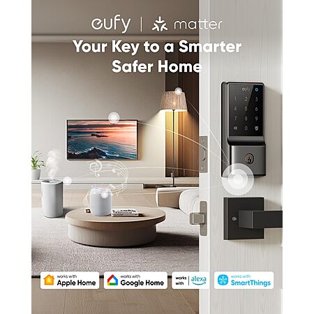 eufyHome via Amazon[amazon.com] has for Prime Members: eufy Security Smart Lock C34, Keyless Entry Door Lock w/ Apple Home Ecosystem on sale for $66.49. Shipping is free.
