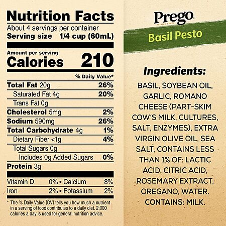 8-Ounce Prego Basil Pesto Sauce $2.44 w/ S&S + Free Shipping w/ Prime or on $35+