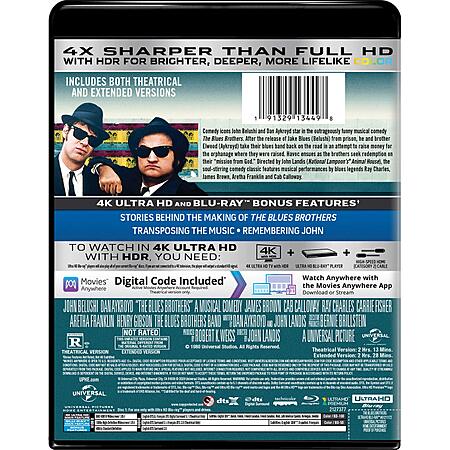 • Includes 4K UHD, Blu-ray and a digital copy of The Blues Brothers (Subject to expiration. Go to NBCUCodes.com for details.)