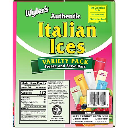 96-Count 2-Oz Wyler's Authentic Italian Ices Freezer Bars (Assorted Flavors) $4.91 + Free Shipping w/ Prime or on $35+