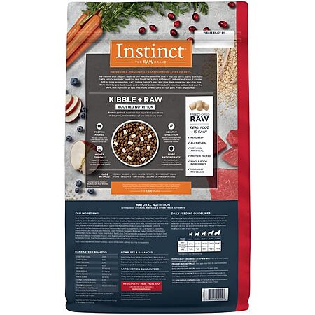Instinct Raw Boost, Natural Dry Dog Food with Freeze Dried Pieces, High Protein, Whole Grain Recipe - Real Beef & Barley, 20 lb. Bag $59.49