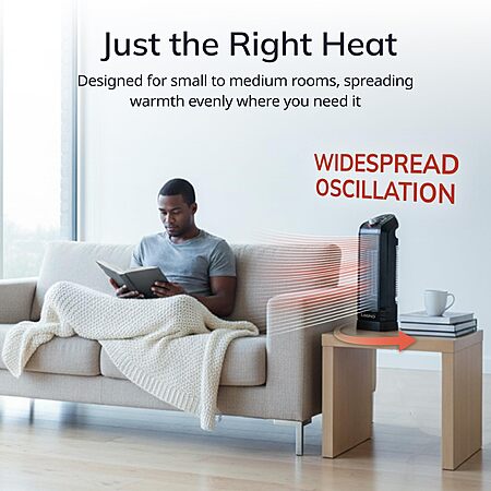 Model: Lasko Oscillating Ceramic Space Heater for Home with Overheat Protection, Thermostat, and 3 Speeds, 15.7 Inches, Black, 1500W, CT16450, Small
