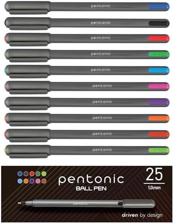 Model: Pentonic Ballpoint Pens, 25 Count, 10 Assorted Ink Colors, 1.0 mm Medium Point, Smooth Writing For Journaling & Note Taking (PEN12127)