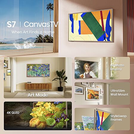 Model: Hisense 55-Inch Class QLED 4K S7N CanvasTV Series Dolby Vision HDR Google Smart TV (55S7N, 2024 Model) - Art Mode, Anti-Glare Panel, Hi-Matte Display, Frame & UltraSlim Wall Mount Included, 144Hz