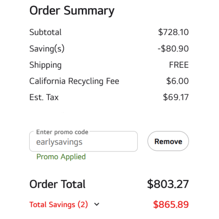 EARLYSAVINGS still works for me