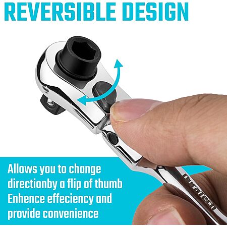 Reversible Design: Ratchet handle ergonomically designed and easy-to-use thumb operated reverse switch mechanism allows your loosen and tighten fastener job without removing the socket. Enhance job efficiency and provide you with convenience