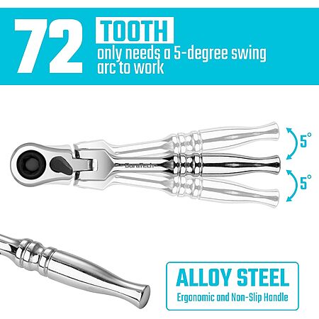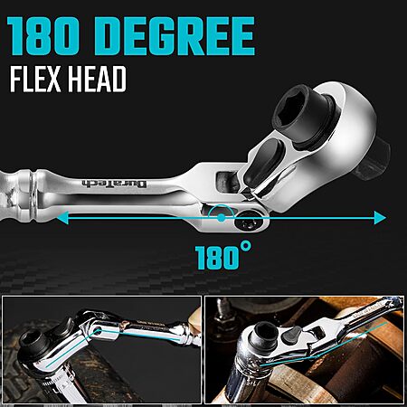 Flexible Head Design: Only needs a 5 degree swing arc to work. Flexible ratchet design allows easy movement in tight spaces and a full 180-degree range of motion, making work easier