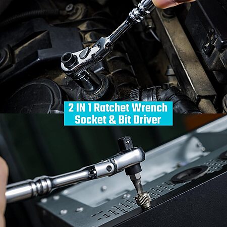 2 In 1 Design: The ratchet handle combines 1/4 " drive ratchet with bit driver. 1 equals 2 tools. Saving space and providing more flexibility to your daliy work. Meets and exceeds ANSI standards