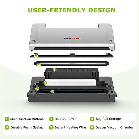 Bonsenkitchen Food Vacuum Sealer w/ External Vac Function, Built-in Cutter, 10 Bags & 1 Roll (Silver) on sale for $39.99 - 50% with promo code