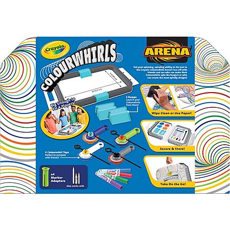 Model: Crayola Colourwhirls Arena Set, 4 Ct Spin Art Toys, 4 Washable Markers, Art Supplies, Gifts for Kids Ages 6, 7, 8, 9