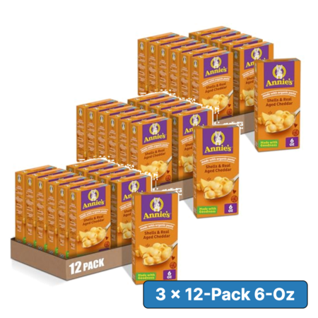 [S&S] $23.38*: 3 × 12-Pack 6-Oz Annie’s Macaroni & Cheese Shells (Aged Cheddar) ($7.79 each) at Amazon