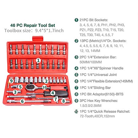 46-Piece Socket Ratchet Wrench Set (1/4" Drive) $8.99 + Free Shipping w/ Prime or on $35+