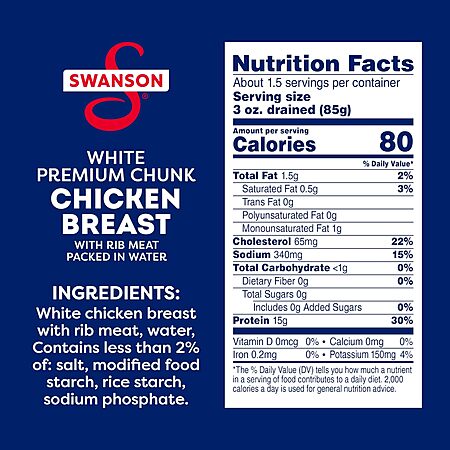 One (1) 9.75 oz can of Swanson White Premium Chunk Canned Chicken Breast in Water