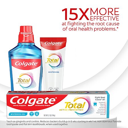 Amazon.com has Colgate Total Active Prevention Whitening Gel Toothpaste with Fluoride, Bulk with Clinically Proven Formula That Fights Plaque Bacteria, Mint, 4 Pack, 5.1 oz on sale for $8.49 when you [S&S] and click 20% coupon.