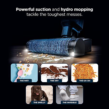 - WET + DRY MESSES: Strong suction pulls in dirt, debris, wet messes & grime. Stain Boost mode doubles cleaning solution for tough stains—delivering a streak-free finish on wood, tile & vinyl.
