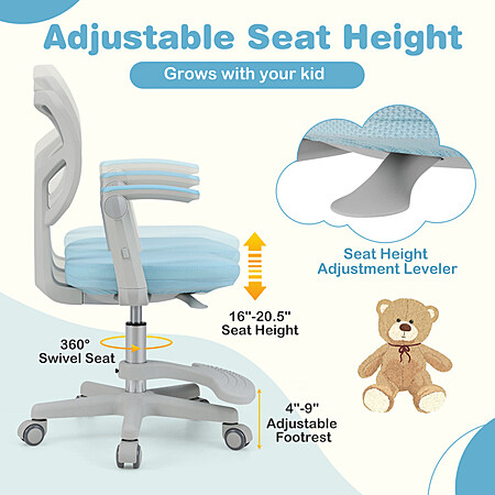 Kids Desk Chair w/ Adjustable Height Armrest & Footrest $62 + Free Shipping