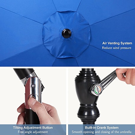 9' ZUNMOS Outdoor Patio Umbrella w/ Push, Tilt & Crank (Blue) $29 + Free Shipping
