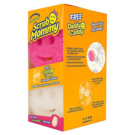 Scrub Daddy Polymer foam Sponge with scouring pad Stainless Steel | SM6CTCADDY - 6 Pack w/ caddy $4.92