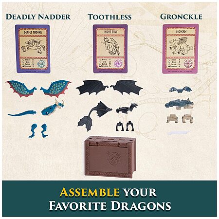 3 Dragons: Assemble then showcase your favorite dragons, like Toothless, Gronckle, and Deadly Nadder; with authentic movie styling