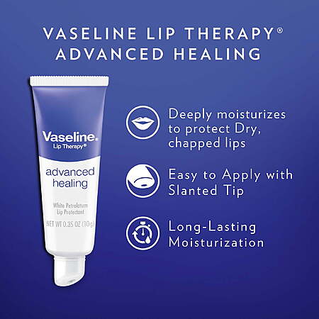 Product Description: | With its original formula, Vaseline Lip Therapy is a lip balm you can rely on that provides long-lasting relief from dryness, dullness and cracked lips. This everyday essential for healthy-looking lips is made with 100% pure Vaseline Jelly, just like all Vaseline lip care products. Vaseline jelly is the original wonder jelly that has been helping to heal dry skin since 1870, and now you can get all its benefits in a lip balm product exclusively designed for lips. The top, protective layer of skin on your lips is thinner than on the rest of your body, so it needs a lip balm that provides long-lasting moisturization. These formulas help support the natural recovery of your dry lips by locking in moisture for healthy looking lips. And since it comes in a lip balm tube, it's perfect for on-the-go to help fight the elements that can be hard on your lips. Vaseline Lip Therapy Lip Balm Tube is great for safeguarding against dryness caused by weather, so you can be confident that your lips are ready to face the outdoors. Use alone, or in combination, with our other Vaseline products including body lotion, body butter, sprays, lip balms and petroleum jelly. We’re proud to be working with Direct Relief in our mission to promote better skin health for everyone around the world. The Healing Project provides dermatological care, Vaseline Jelly and medical supplies needed to help heal the skin of people affected by poverty or emergencies around the world. Vaseline Lip Therapy Lip Balm Tube Advanced Healing 0.35 oz HEALTHIER LOOKING LIPS: Vaseline Lip Therapy Lip Balm instantly softens and soothes dry lips for healthier looking lips. MOISTURE LOCK: Locks in moisture and helps relieve dull, cracked and dry lips, so lips feel better over time. ON THE GO: This lip balm is great for safeguarding against dryness caused by weather, so you can be confident that your lips are ready to face the outdoors. TRIPLE-PURIFIED: Vaseline lip balm is made with triple purified 100% Vaseline Petroleum Jelly Locks in moisture to help lips recover discomfort, providing lip repair. TRUSTED RELIEF: Soothing body and hand moisturizer for dry skin that combines 100% Aloe Extract with Vaseline's trust formula that's been helping lock in moisture for over 150 years. The HEALING PROJECT: Working with Direct Relief, we provide dermatological skin care, Vaseline Jelly and medical supplies to people affected by poverty or emergencies around the world. |