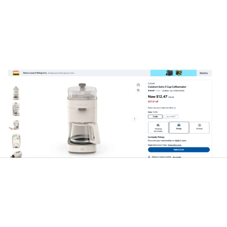 Cuisinart Soho 5 Cup Coffee Maker Highly YMMV @ Sam's Club In-Store Only $12.47