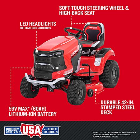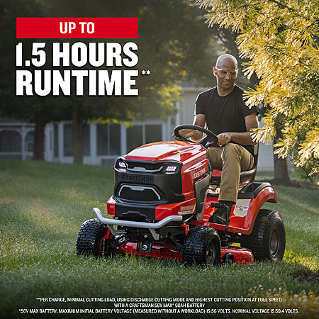 56V CRAFTSMAN 42" Turn Tight Battery Riding Lawn Mower w/ 60Ah Battery (CMCRM233303) on sale for ~