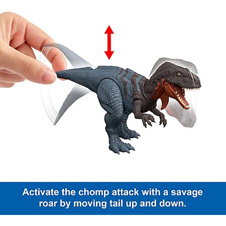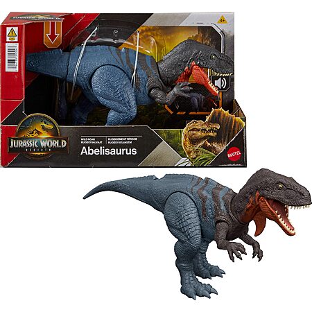 Model: Mattel Jurassic World Rebirth Wild Roar Dinosaur Toy, Abelisaurus Posable Figure, Tail-Controlled Chomp Multi-Direction Attack & Sound, Digital Play