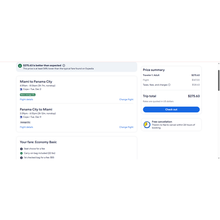 COPA Airlines, a Star Alliance member have round trip airfares travelling from Miami (MIA) to Panama City (PTY) for $276, nonstop. These are basic economy fares that allow a personal item and a carry-on bag. There is no seat selection and no change.