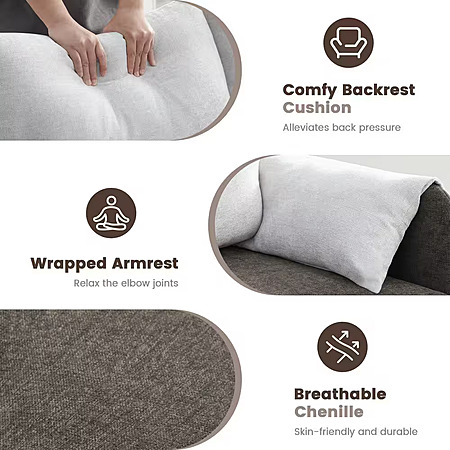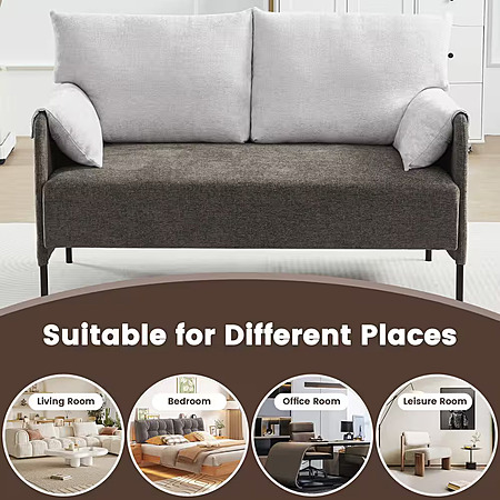 Enhance your living space with this contemporary two-tone loveseat, blending style and comfort seamlessly. Crafted with breathable, skin-friendly chenille fabric, this loveseat offers a cozy and inviting seating experience. Ergonomic backrest cushions alleviate back pressure, while the plush wrapped armrests provide a relaxing spot for your elbows. The unique two-tone design adds a touch of modern elegance to any room, making it a perfect addition to apartments, offices, or reading nooks. Color: Brown.