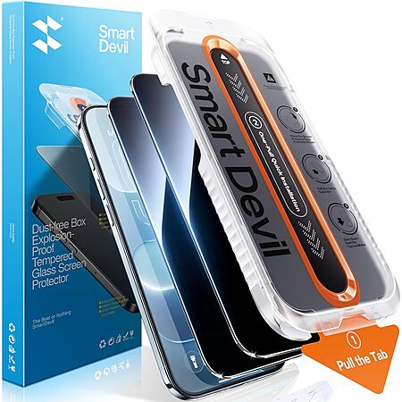 2-Pack SMARTDEVIL Privacy Glass Screen Protector+ for iPhone 17, 17 Pro, 17 Pro Max, & Air $4.50 @ Amazon