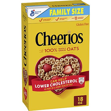 Cheerios, Heart Healthy Gluten Free Breakfast Cereal, Family Size, 18 oz~$2.81 With S&S @ Amazon