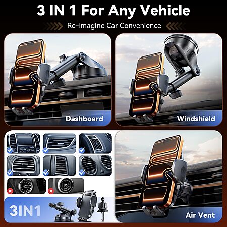 Rorhxia-US via Amazon [amazon.com] has 3IN1 Car Phone Holder Stand w/ Suction (Black) on sale for $12.49 - 50% off when you enter the coupon code IJDZ4EZS=$6.24. Shipping is free w/ Prime or on $35+.