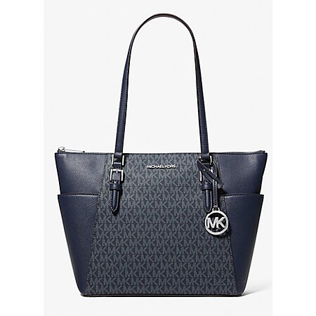 Charlotte Large Logo and Leather Top-Zip Tote Bag, $80,