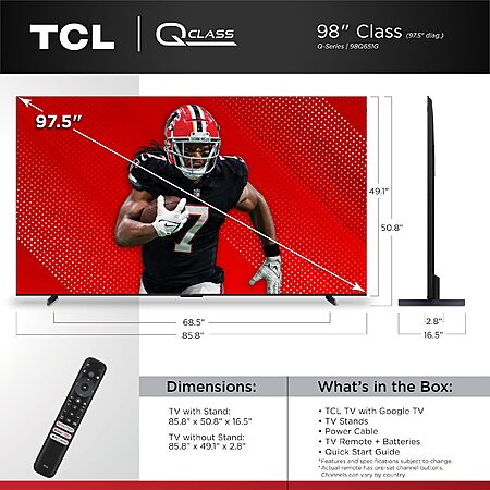 TCL 98” Class Q6 (98Q651G) 4K UHD 120Hz HDR QLED Smart TV with Google TV $1299.99