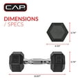 Product Description: | The CAP barbell coated hex dumbbells feature steel, diamond knurled handles with protective coating providing long-lasting performance. The Hex shaped dumbbell heads ensure the dumbbell will not roll when set down, avoiding injuries and allowing for easy storage. The benefits of dumbbell exercises include muscle building, improving core strength, boosting balance, promoting better bone health, increasing energy levels, enhancing overall mood and more. Dumbbells are perfect for isolations, full body, functional and hit workouts. Dumbbells are used to exercise all major muscle groups, including arms, chest, back, abs, legs and core. Target individual muscles or get a full body workout by incorporating these dumbbells into your fitness regimen. Sold as a pair. Original Hex Shaped heads prevent rolling and reduce weight room hazards Medium-depth knurling on the ergo handle provides essential grip and security during use The coating is extremely durable and protects dumbbells from damage This dumbbell group from CAP is available in sizes from 5-60 lbs in 5 lb increments Perfect for isolations, full body, functional and HIIT workouts 30-day limited manufacturer warranty |